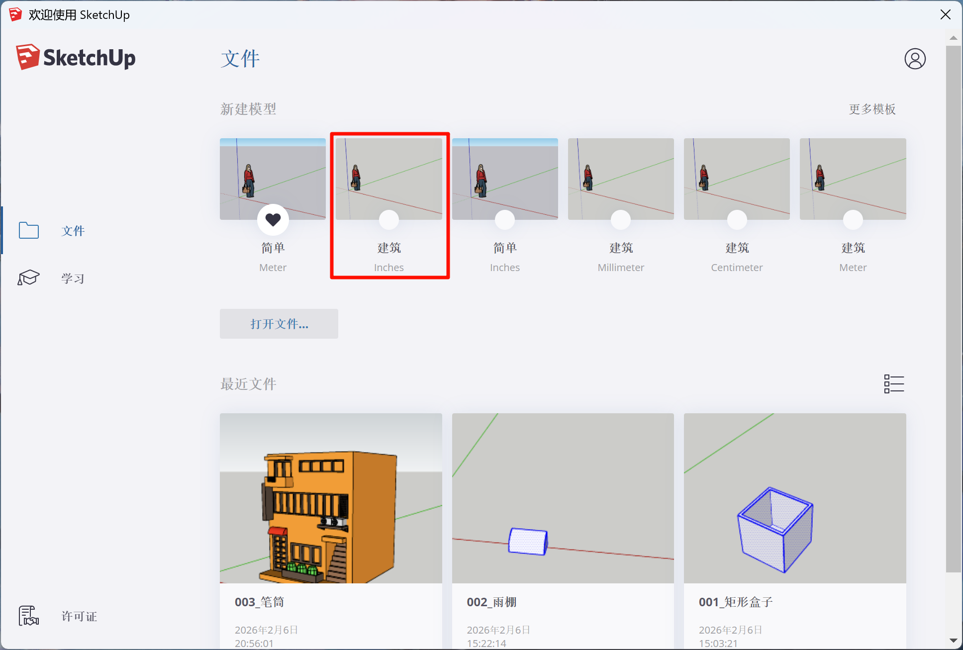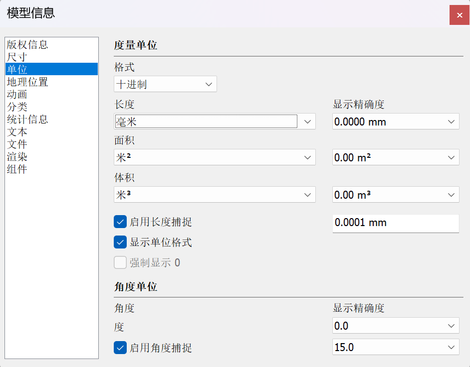 • 新建模型 ---> 建筑 ---> 模型信息 ---> 十进制 ---> 毫米